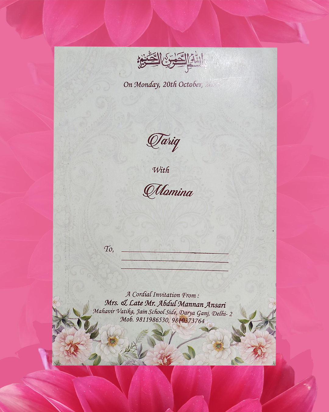 Beautiful Flowers Decorative Wedding Card Size : 6.5x9.5 Inch Price Of cards is included with printing