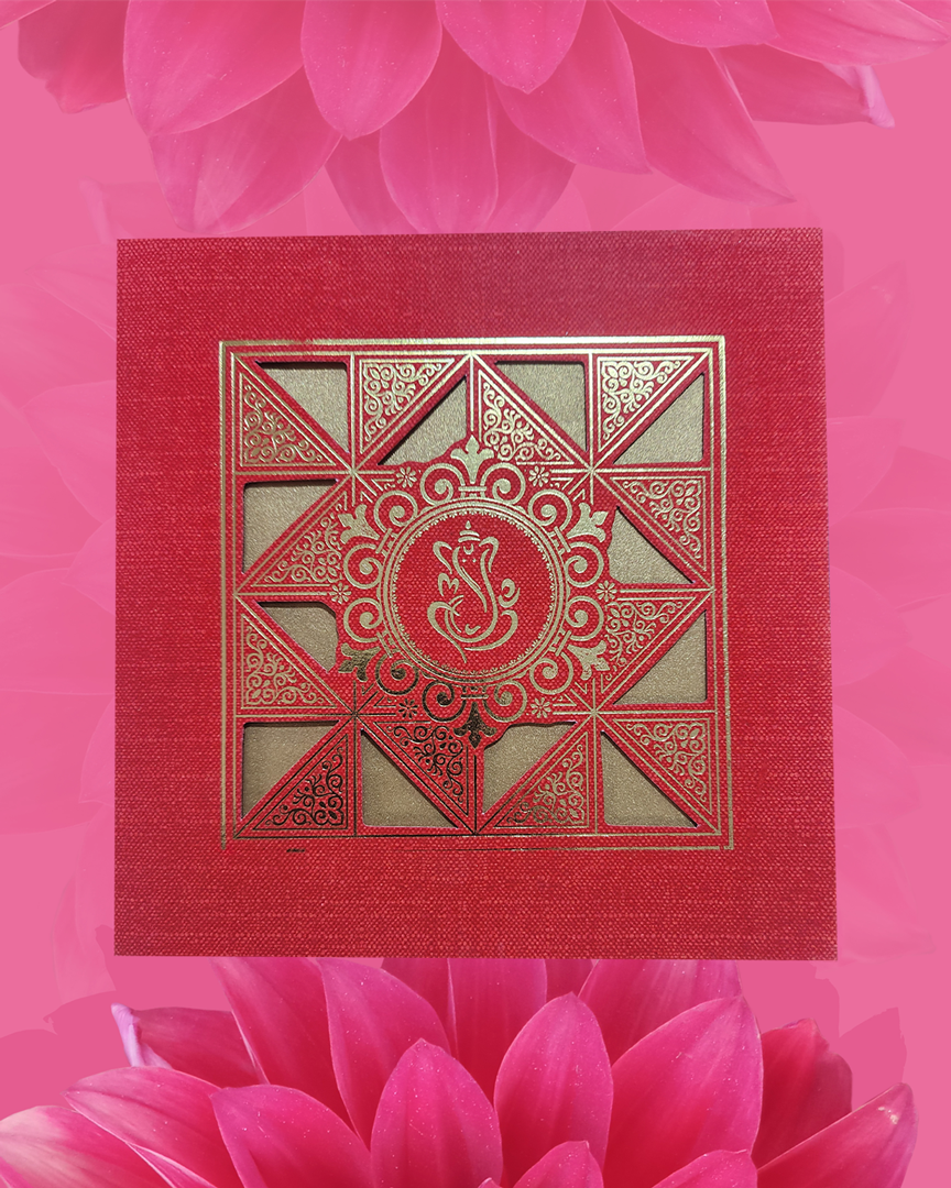 Ganesh Ji Red Golden Wedding Card Size : 7.5x7.5 Inch Price Of cards is included with printing