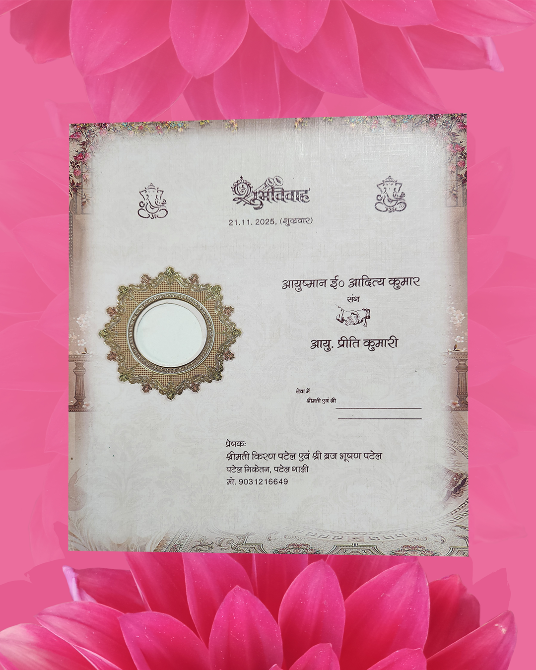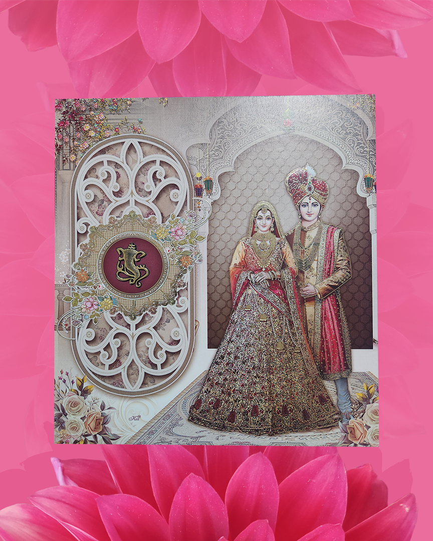 Indian Wedding Hindu Groom Bride Wedding Card With Printing Size : 8.5x9 Inch Price Of cards is included with printing