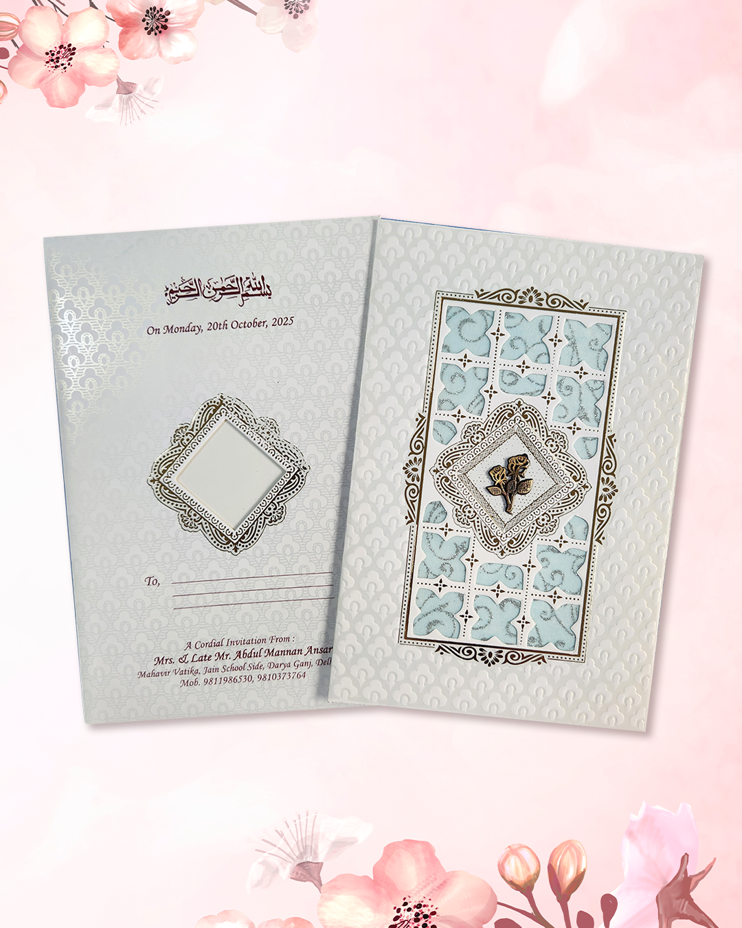 Light Blue & White Beautiful Wedding card Direct Card Size : 6.5x9.5 Inch