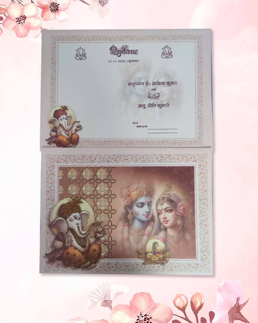 Beautiful Decorative Radha Krishna Wedding Card Leaf Card Size : 10x7.5 Inch